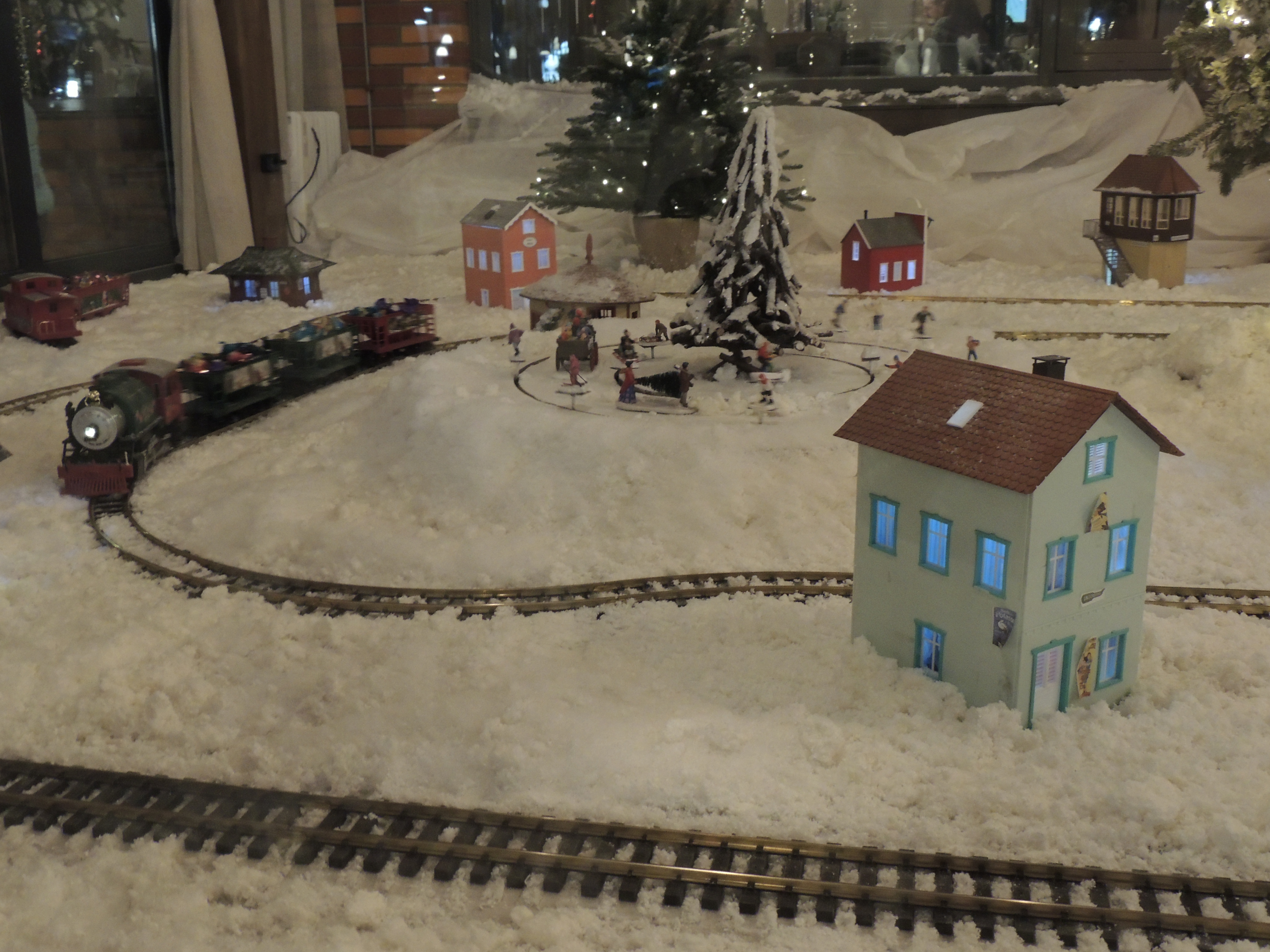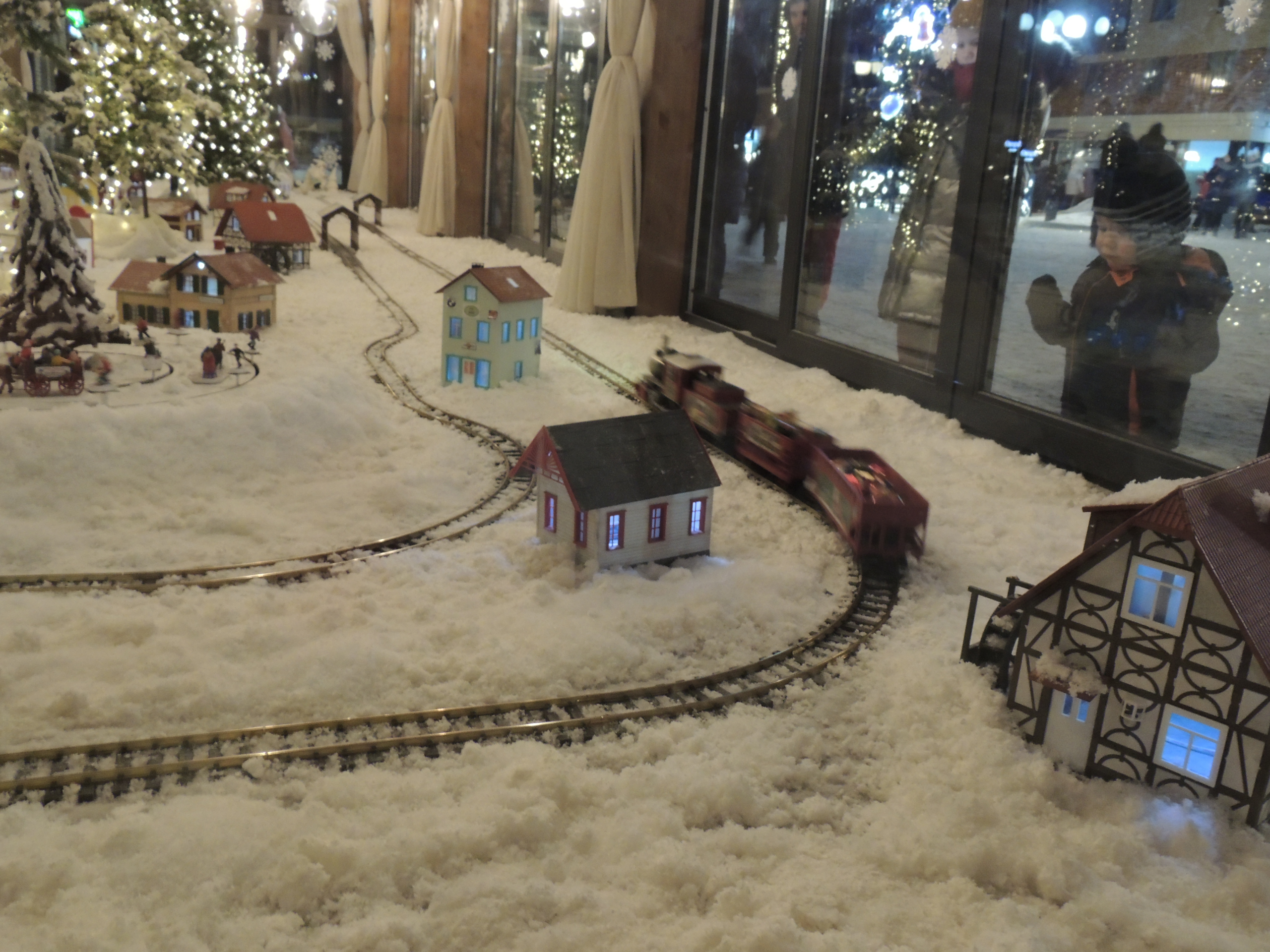 А знаете, почему у этой яркой витрины толпятся и взрослые, и, особенно, дети? Потому что там шустрый игрушечный паровозик, специально запущенный администрацией ресторана «Тироль», развозит конфеты по кукольному городку. (Если что, адрес локации: ул. Регатная, 4. Паровозик полчаса ездит, полчаса «отдыхает» с 12.00 до 20.00).