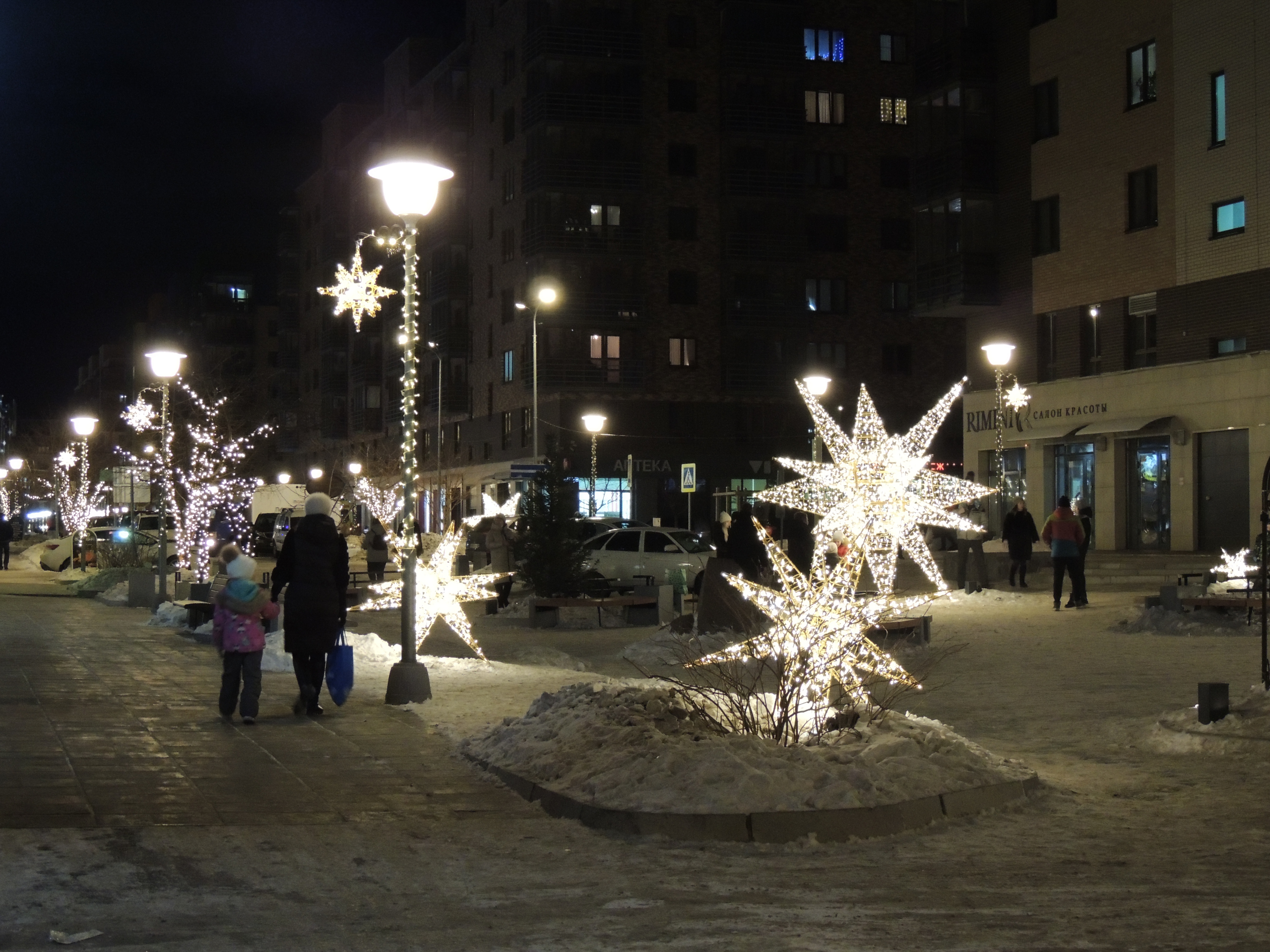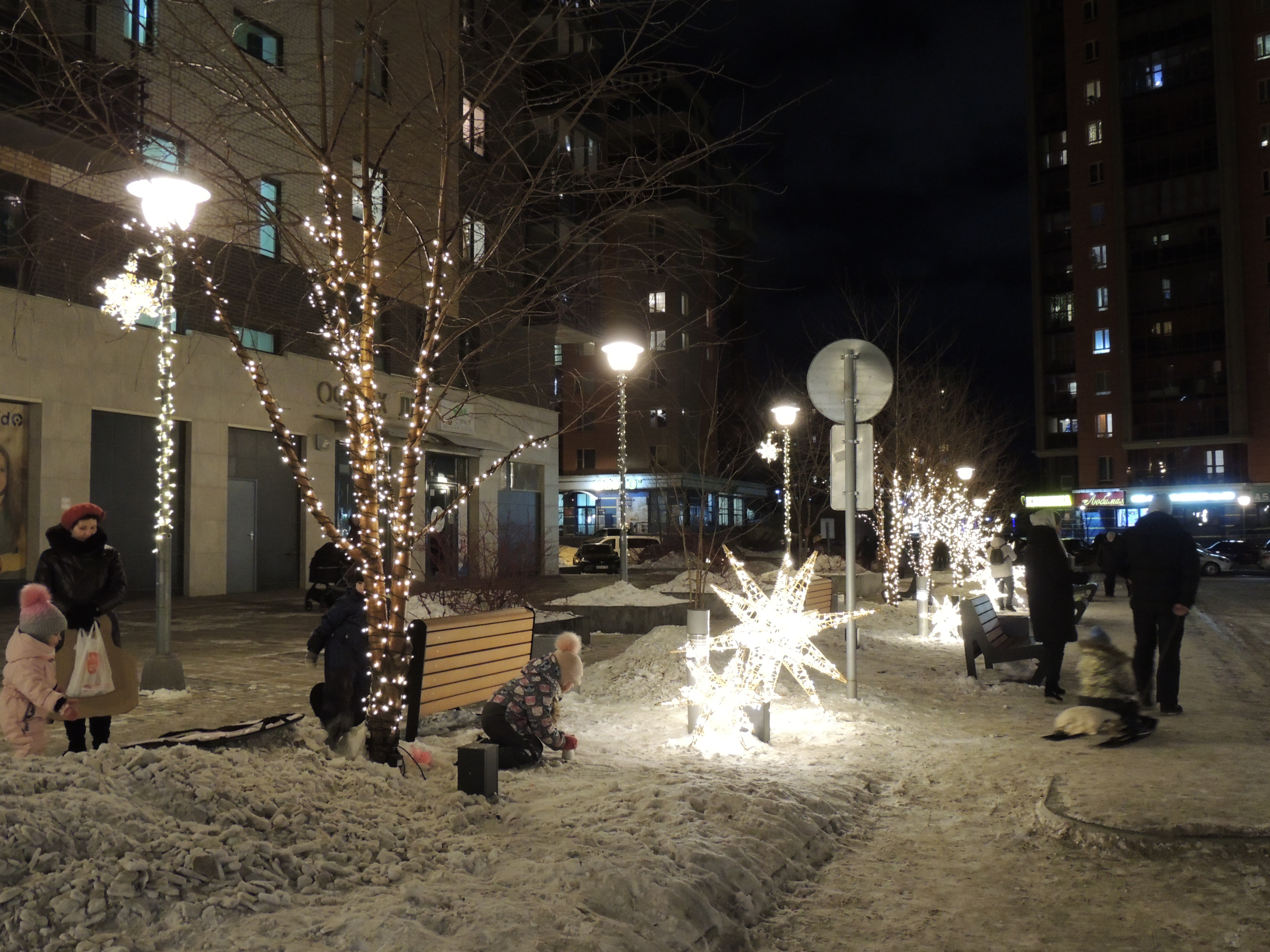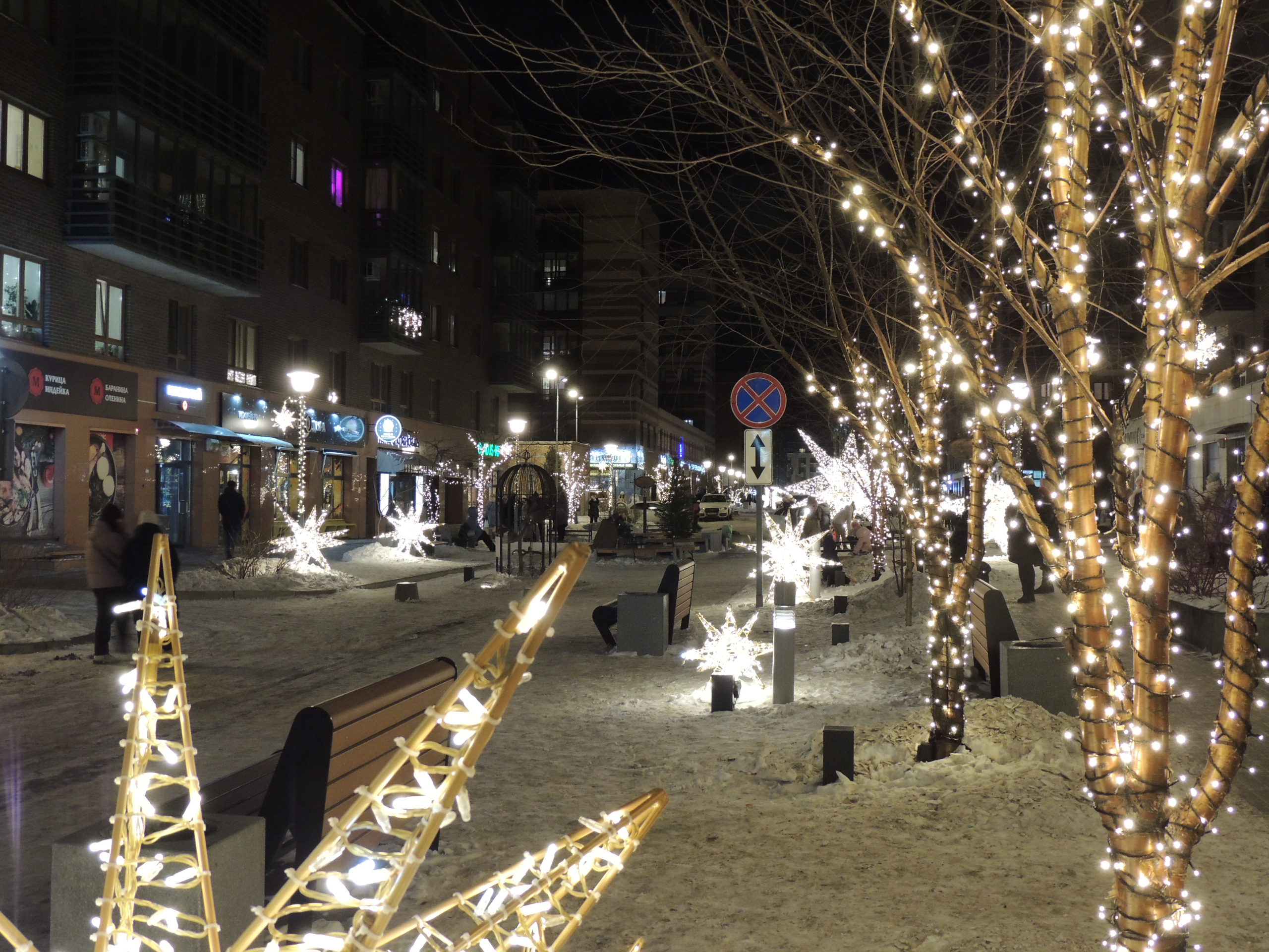 Ещё из нового: бульвар Экзюпери в районе «Южный берег» стал ещё ярче и интересней, — количество больших светящихся звёзд на квадратный метр площади там теперь просто зашкаливает. Появились и кое-какие свежие локации, где любители селфи, при желании, могут оторваться по полной программе. Правобережную Ярыгинскую набережную красиво подсветили. В моём любимом «историческом квартале» на улице Горького поставили ряд искусственных деревьев (тоже светящихся). В итоге это и так весьма нарядное место стало ещё краше.