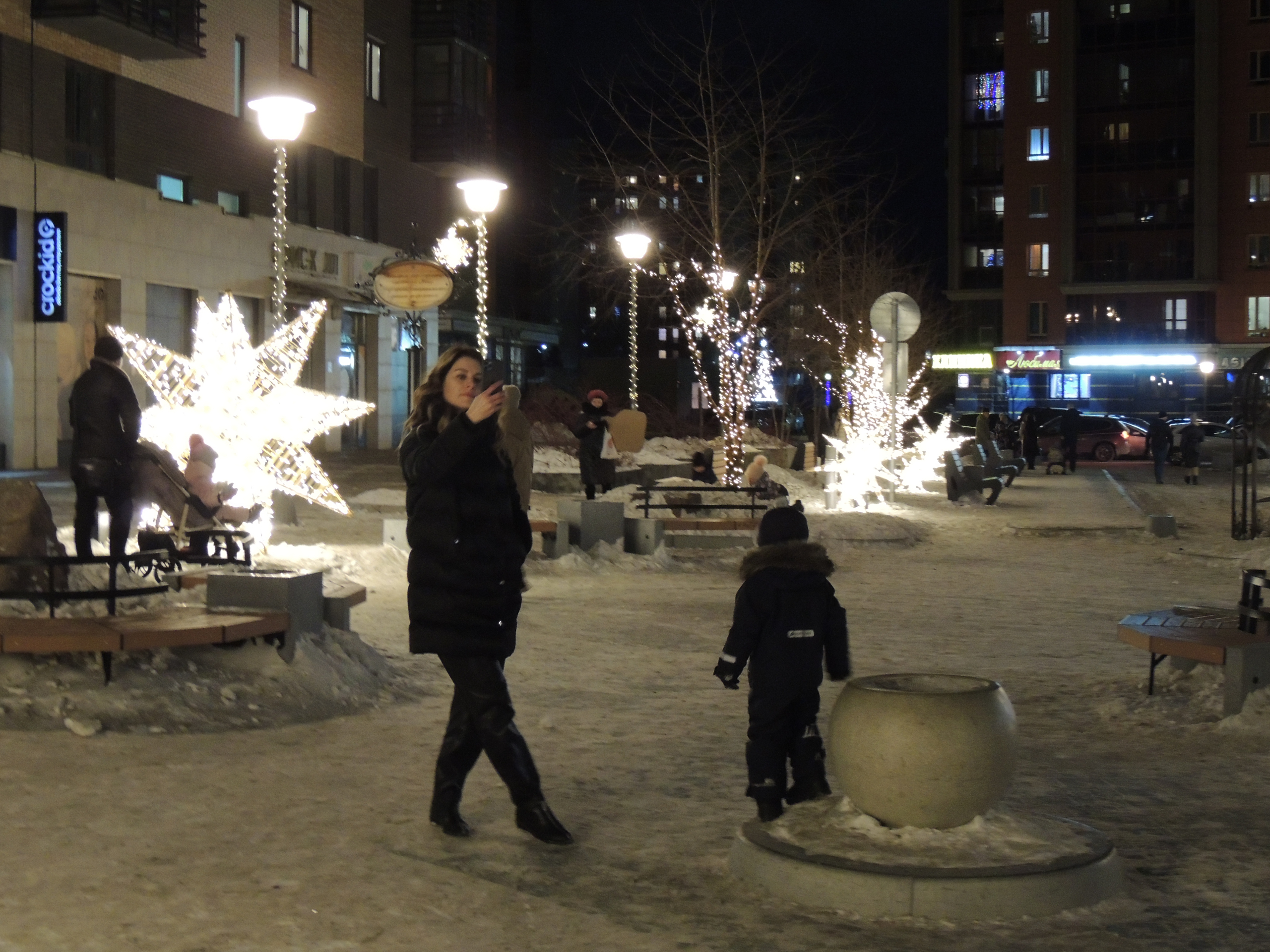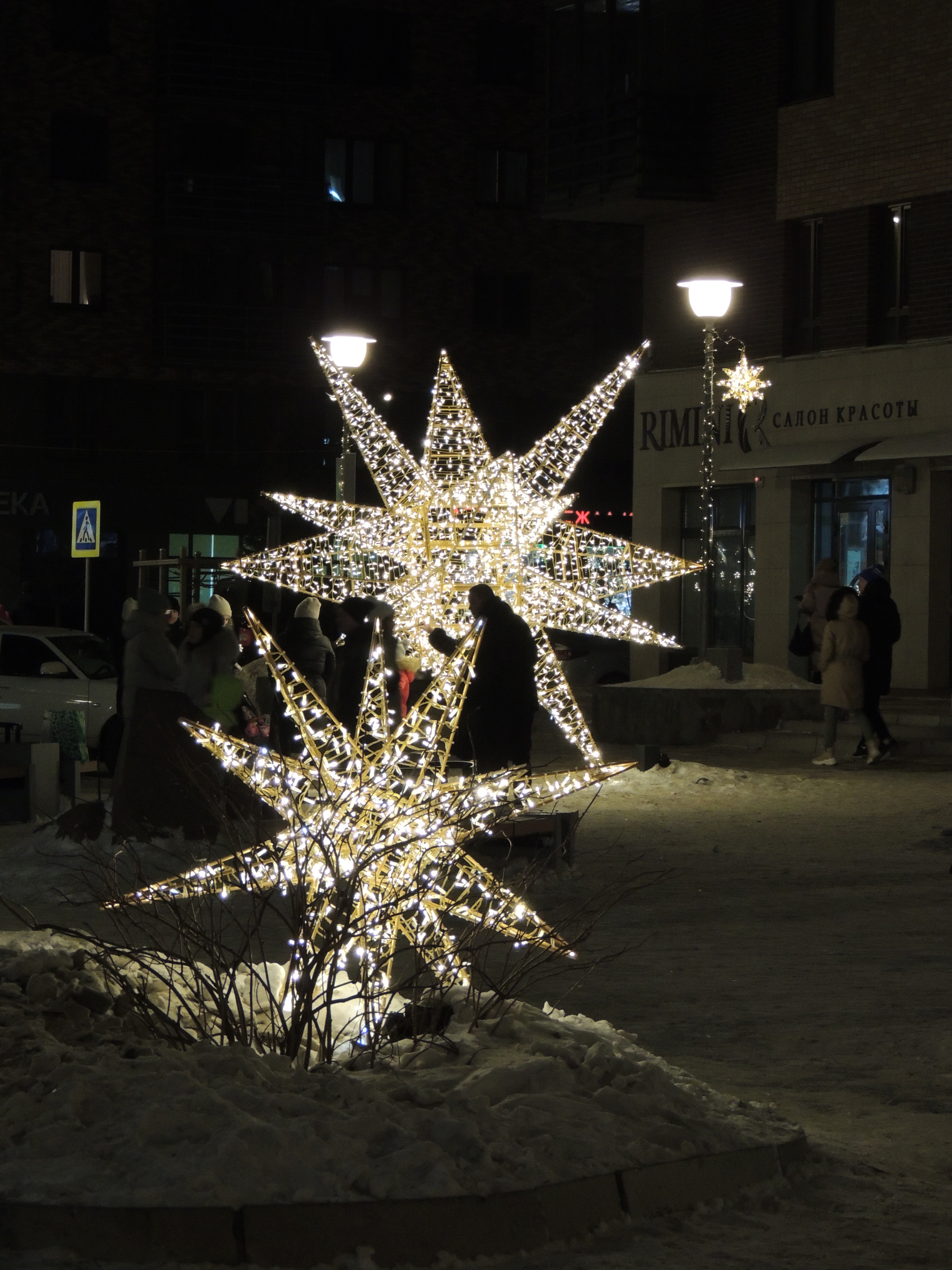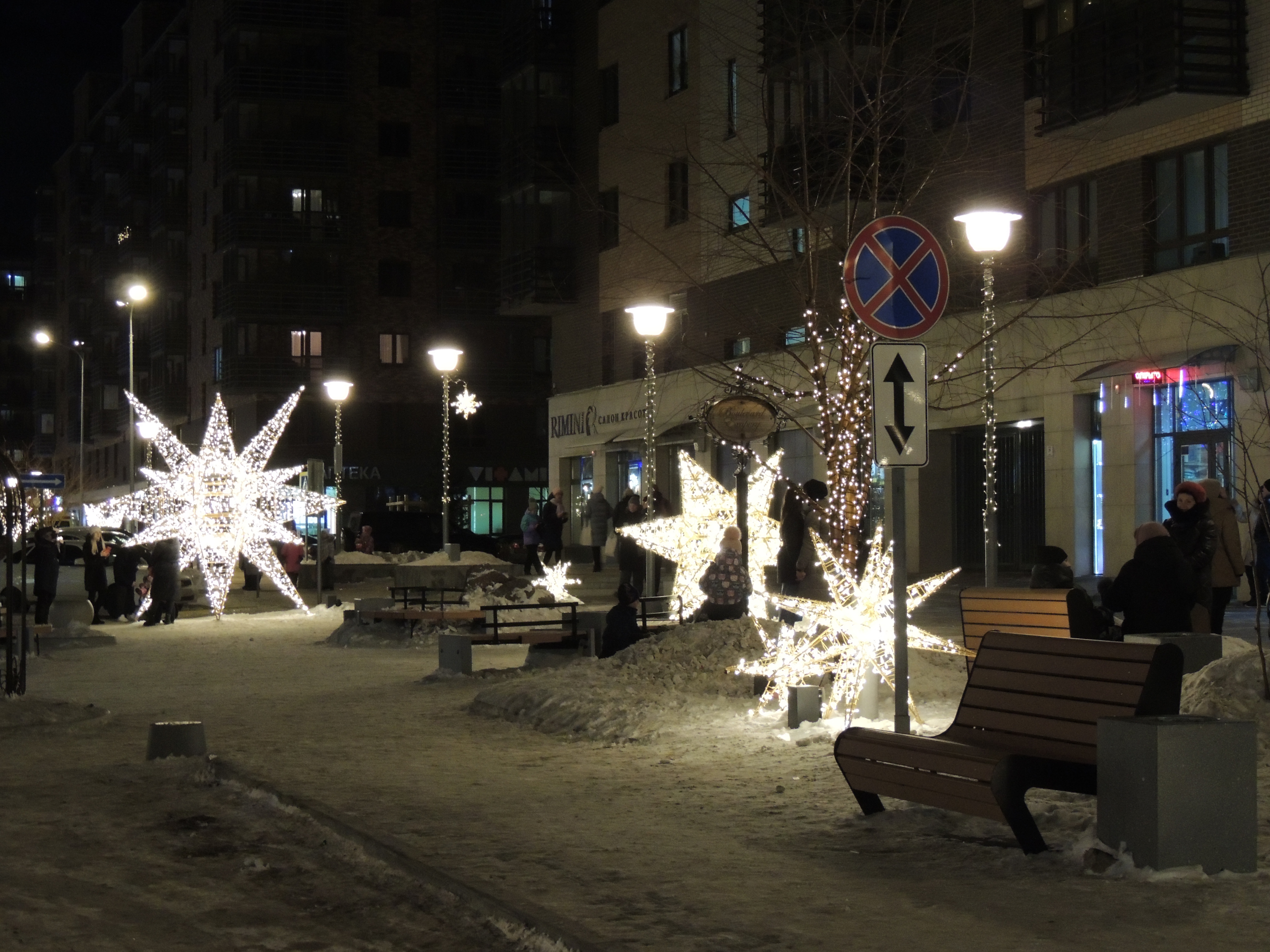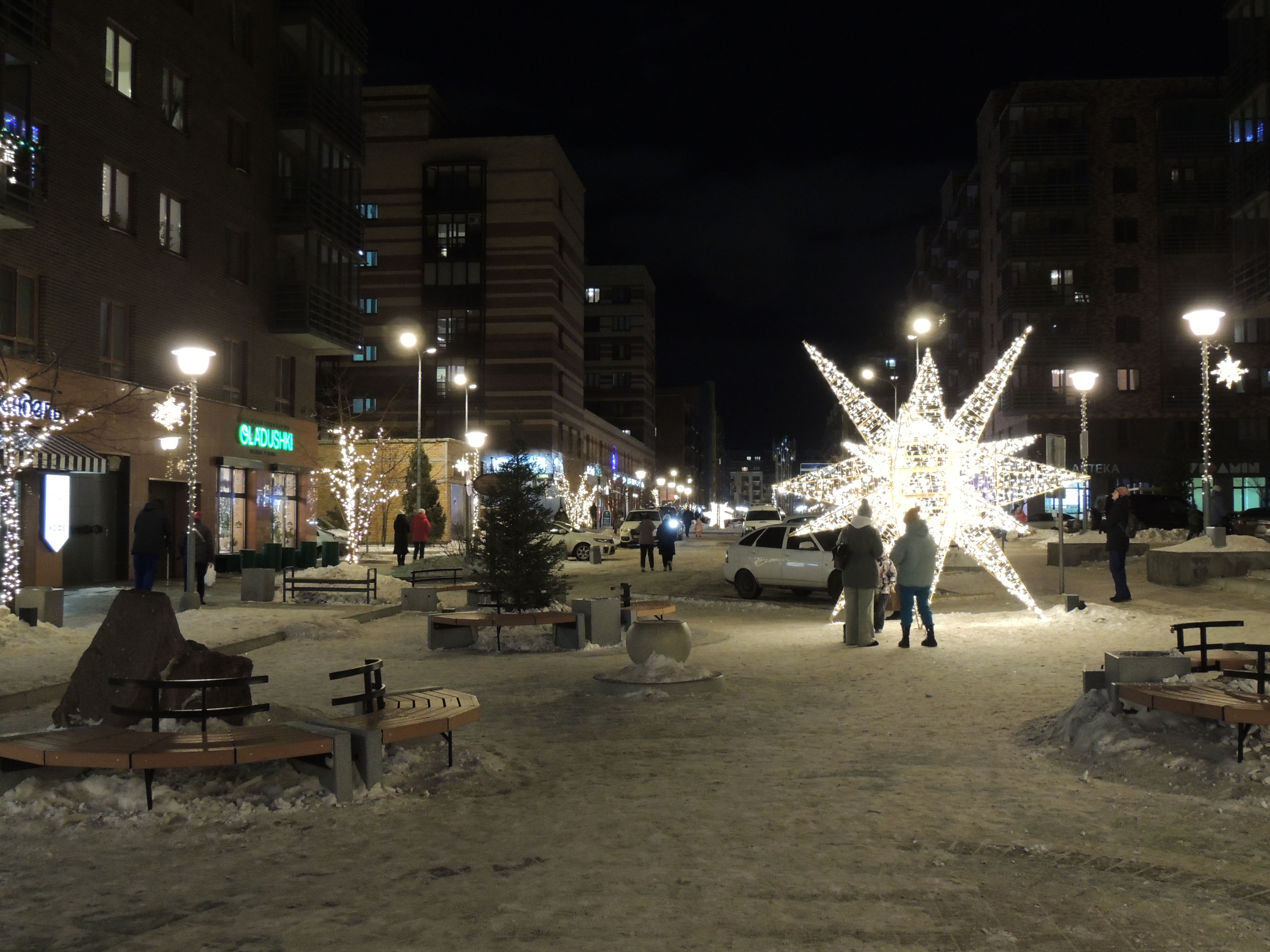 Ещё из нового: бульвар Экзюпери в районе «Южный берег» стал ещё ярче и интересней, — количество больших светящихся звёзд на квадратный метр площади там теперь просто зашкаливает. Появились и кое-какие свежие локации, где любители селфи, при желании, могут оторваться по полной программе. Правобережную Ярыгинскую набережную красиво подсветили. В моём любимом «историческом квартале» на улице Горького поставили ряд искусственных деревьев (тоже светящихся). В итоге это и так весьма нарядное место стало ещё краше.