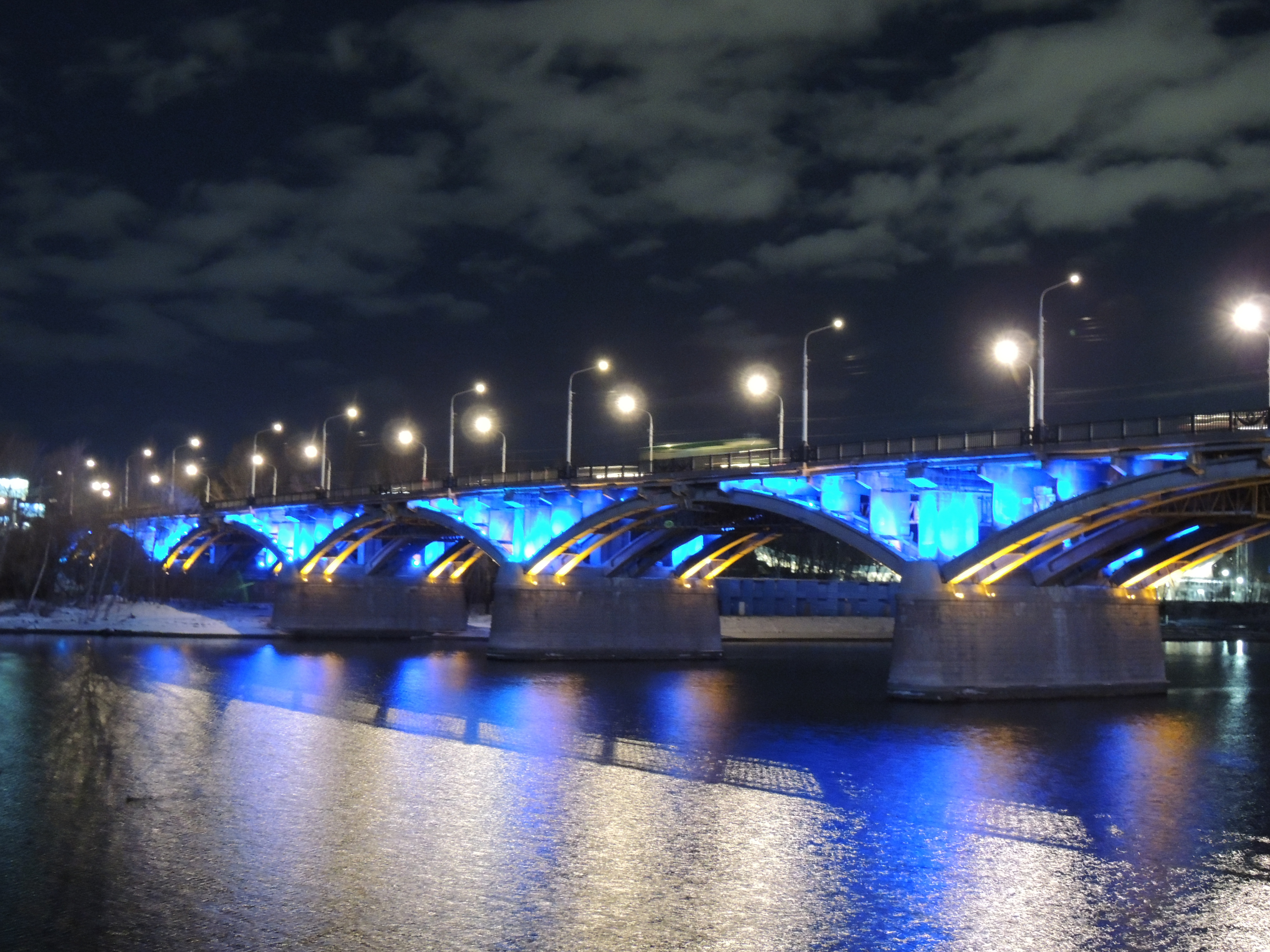 Коммунальный мост тоже в праздничной подсветке. Красивое, ага.
