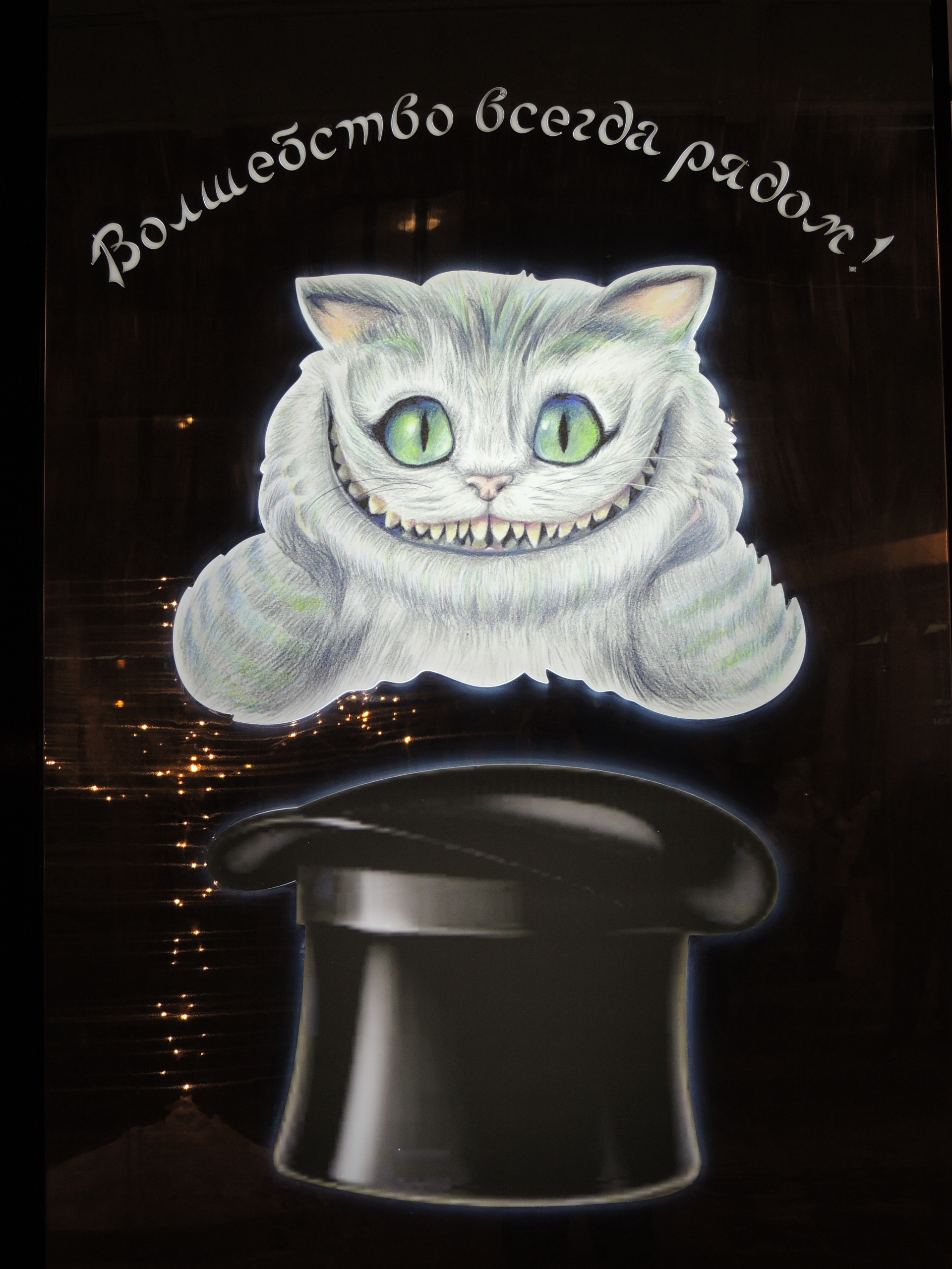 Чеширский кот ооотлично вписывается в окружающую новогоднюю атмосферу! (Какое это было кафе?.. Или, может быть, пекарня «Три коржа»?.. Не помню).