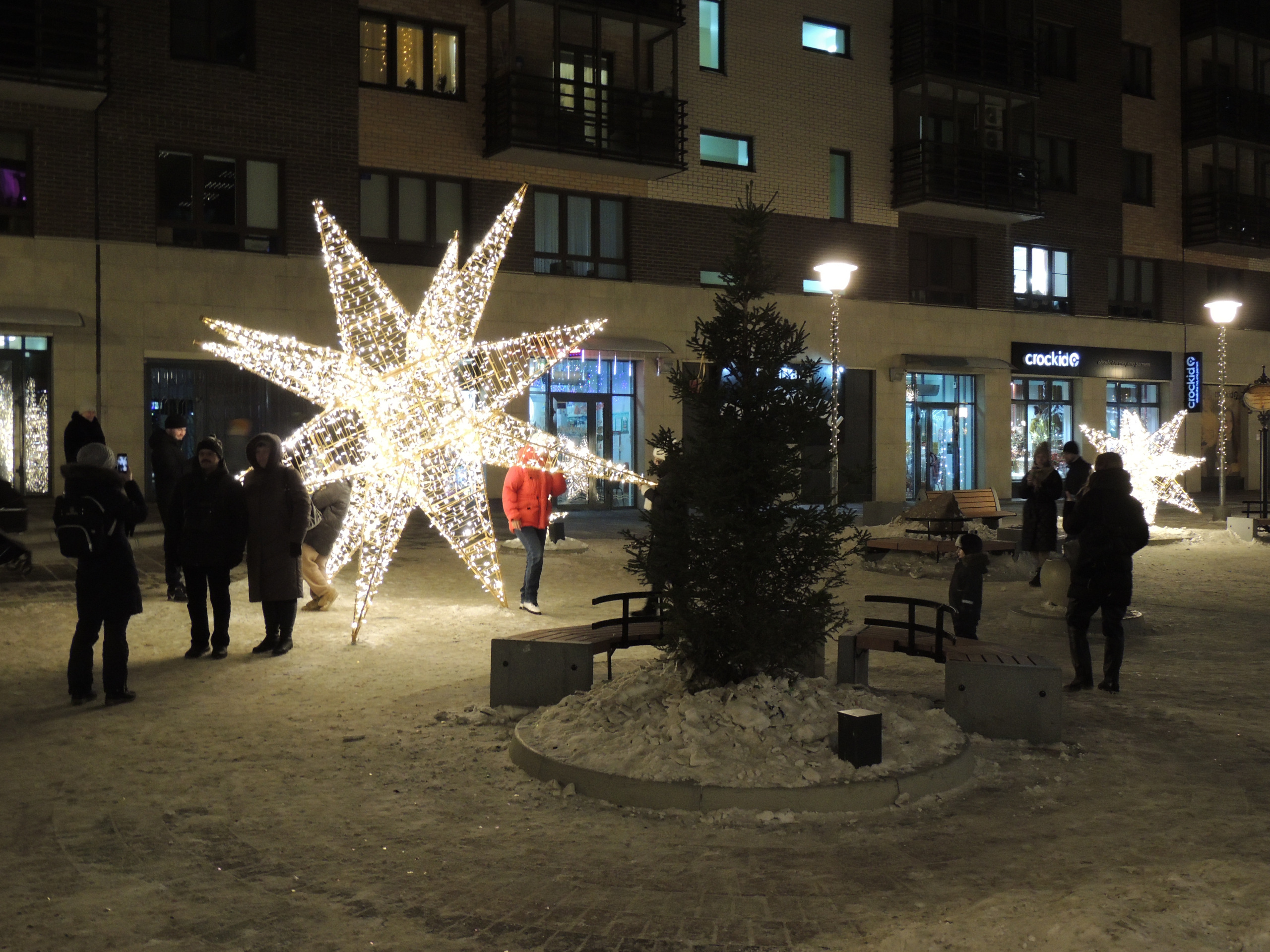 А вот и то самое место, откуда огромные блестящие звёзды начали в своё время «расползаться» по всему бульвару Экзюпери. В позапрошлом году они, в основном, были только вот в этом небольшом сквере, а теперь (сами видите!) распространились вдаль и вширь.